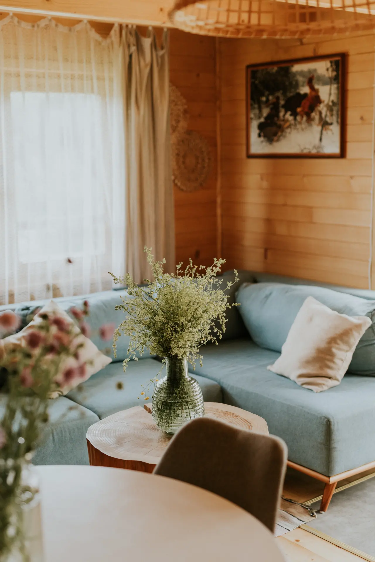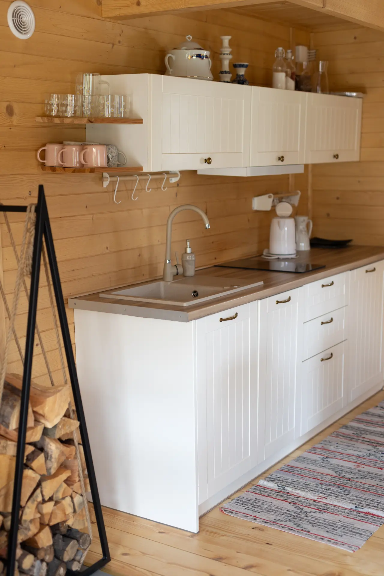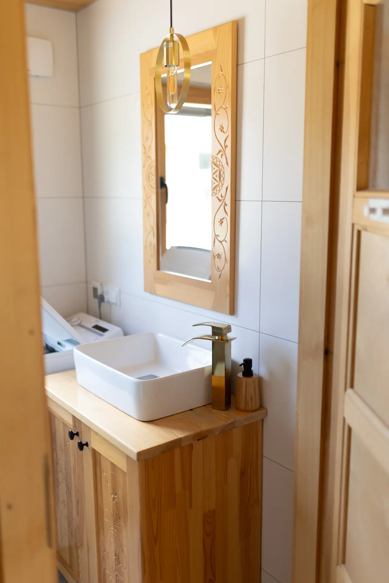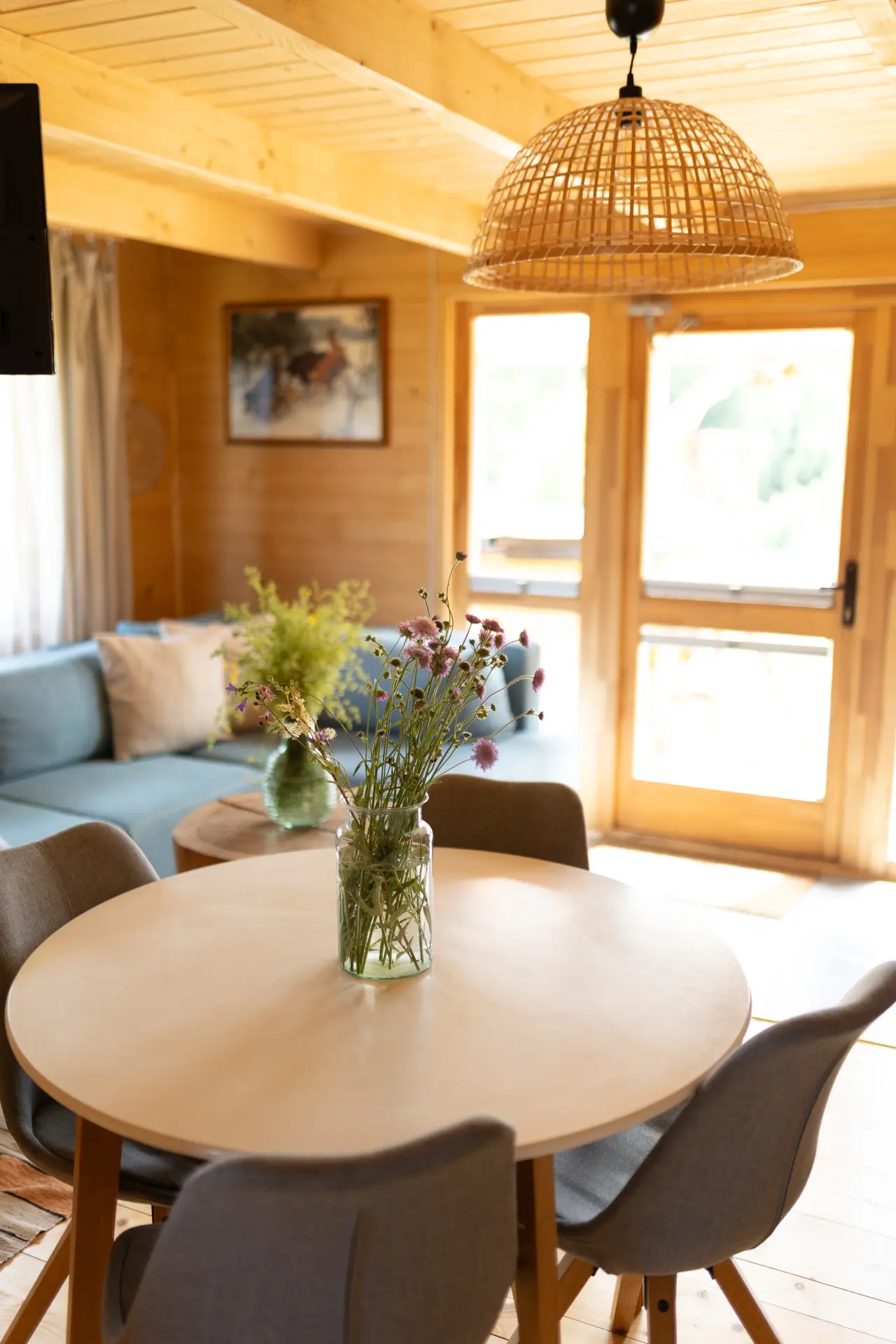 Domek oferuje również przestronny taras z malowniczym widokiem na okolicę – doskonały na poranną kawę, wieczorny odpoczynek czy podziwianie gwiazd. To miejsce, w którym można w pełni odprężyć się i poczuć bliskość natury.