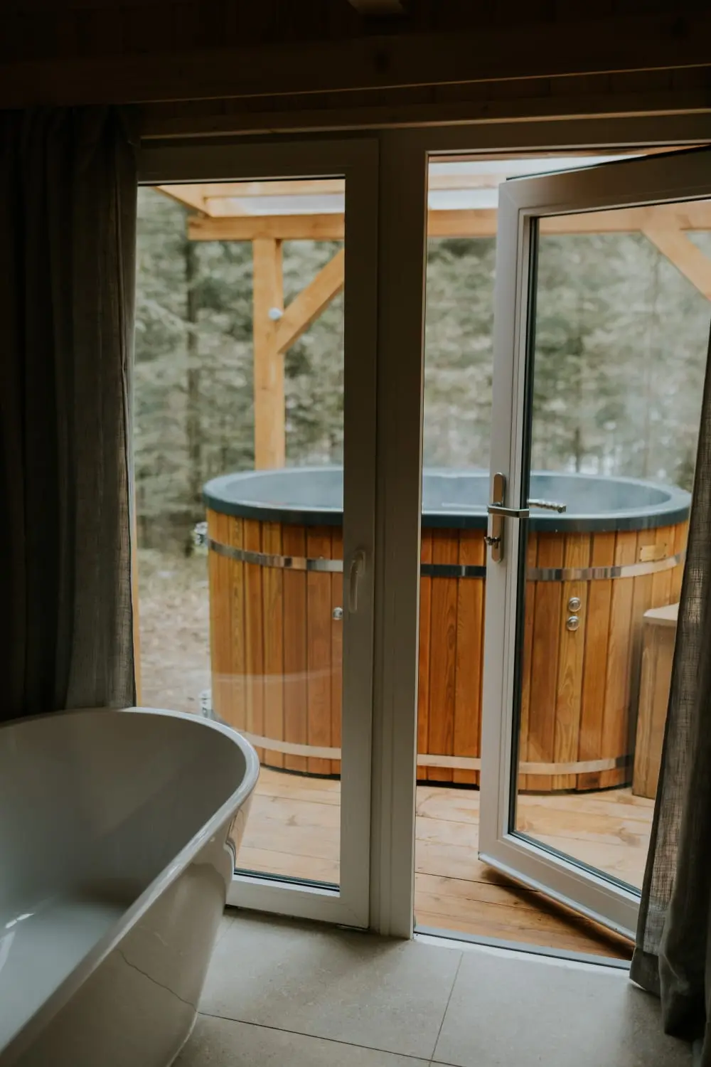 - Łazienka: Wanna z pięknym widokiem na las – idealna na relaksujące kąpiele (brak pralki).