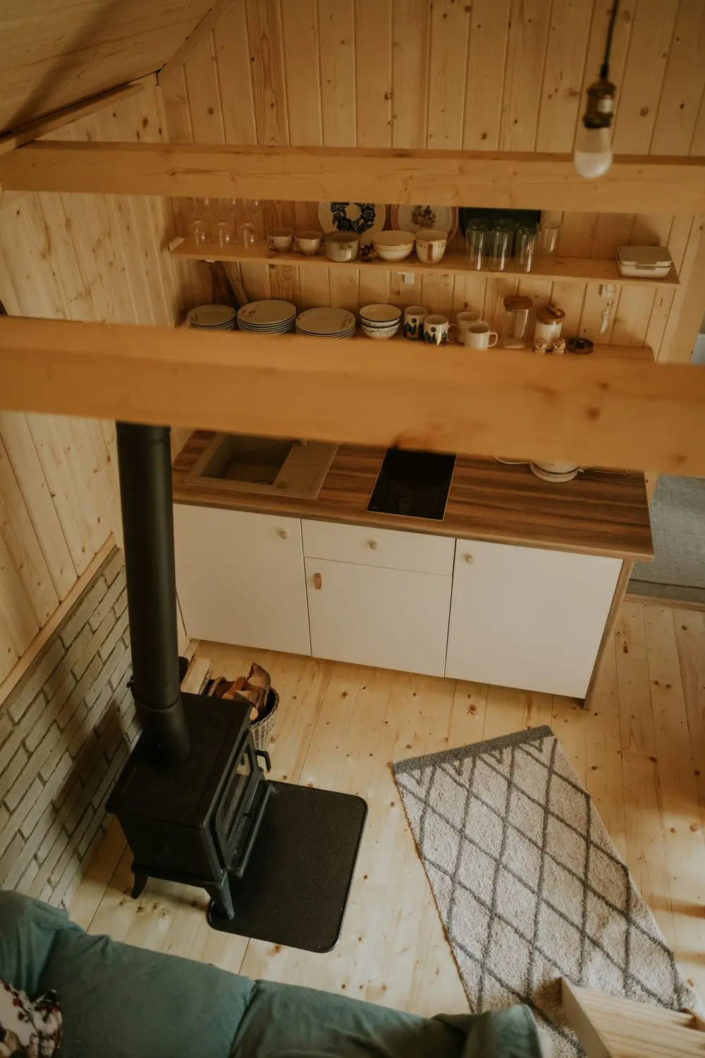 Domek Tiny to harmonijne połączenie przytulności, natury i spokoju. Wystarczy tylko przekroczyć jego próg, by poczuć wyjątkowy klimat tego miejsca. Zapraszamy do odpoczynku w ciszy lasu!