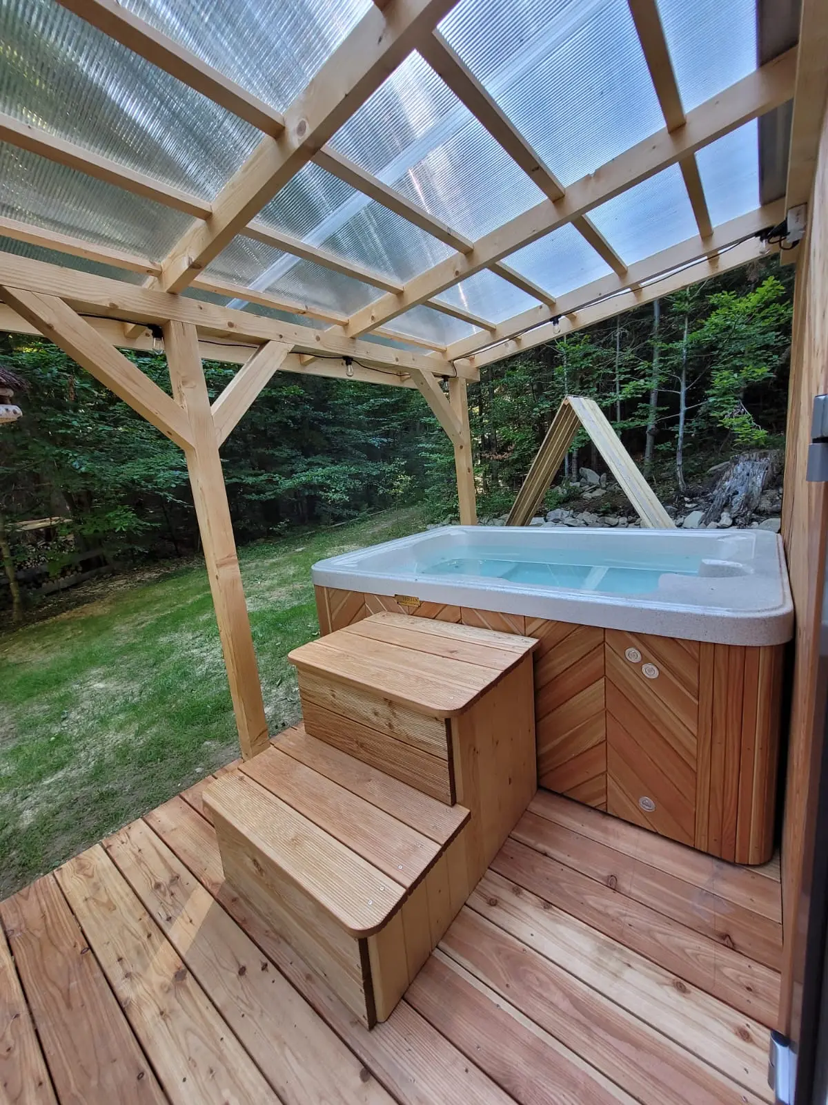 W tym domku jacuzzi jest wliczone w cenę pobytu.