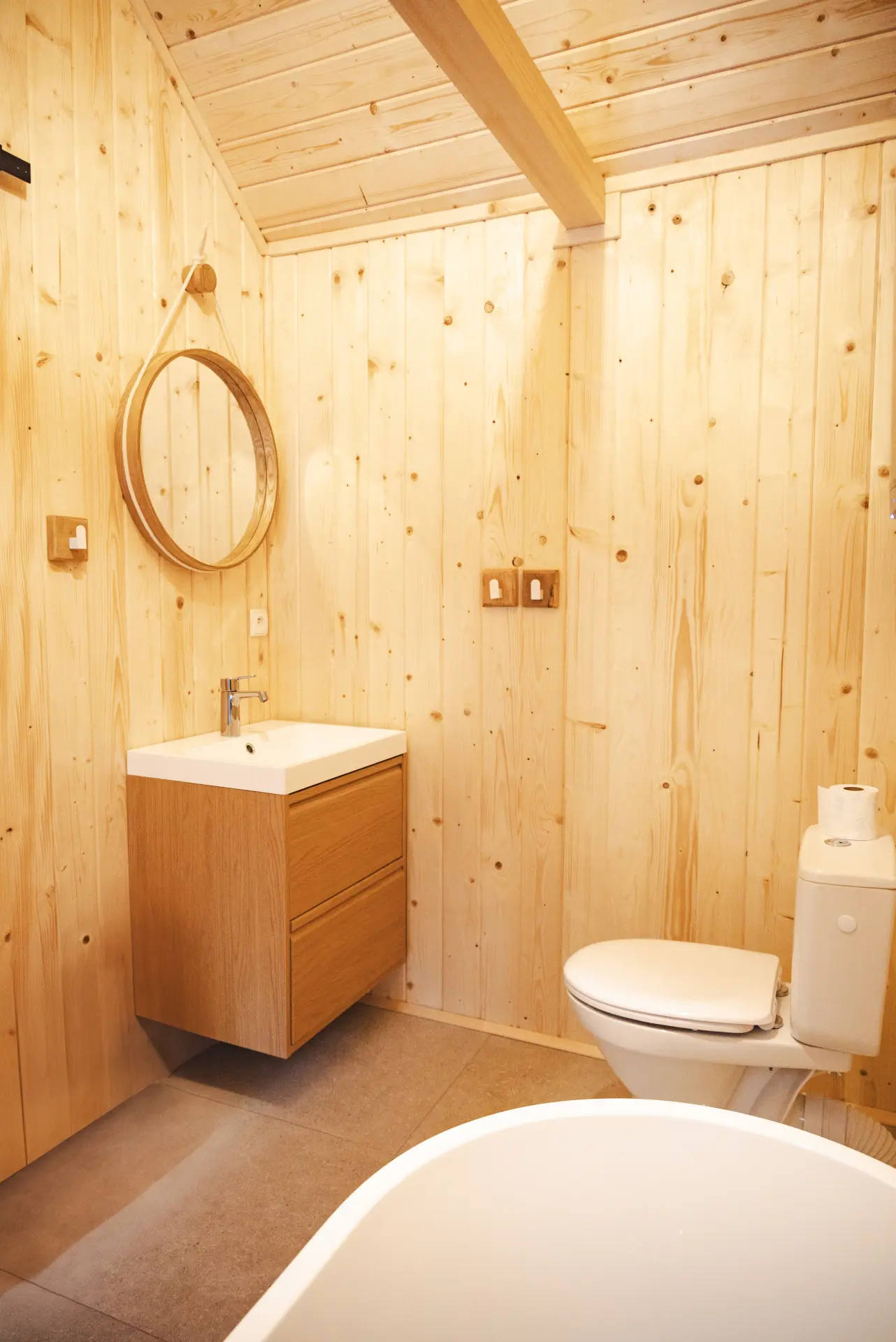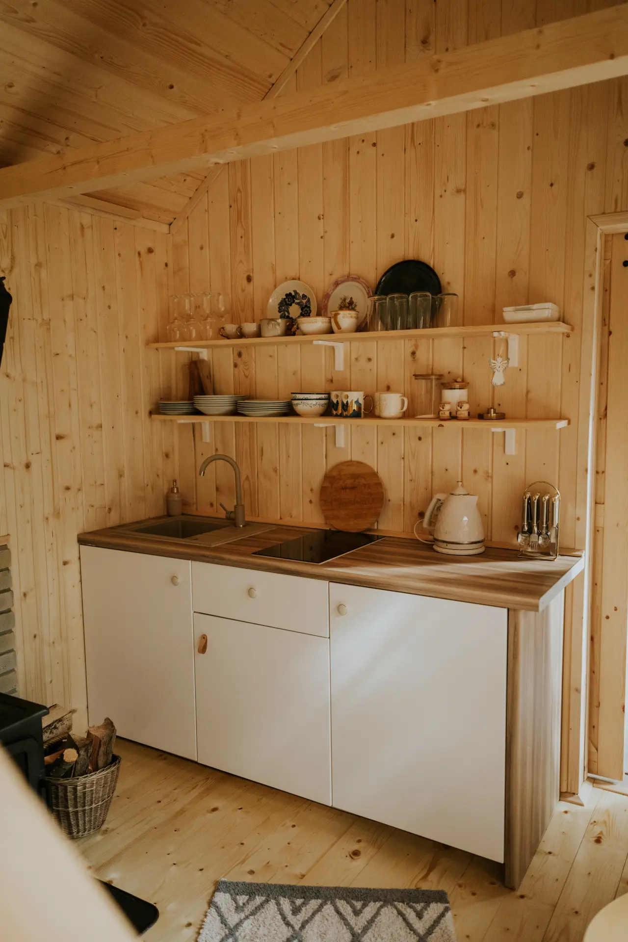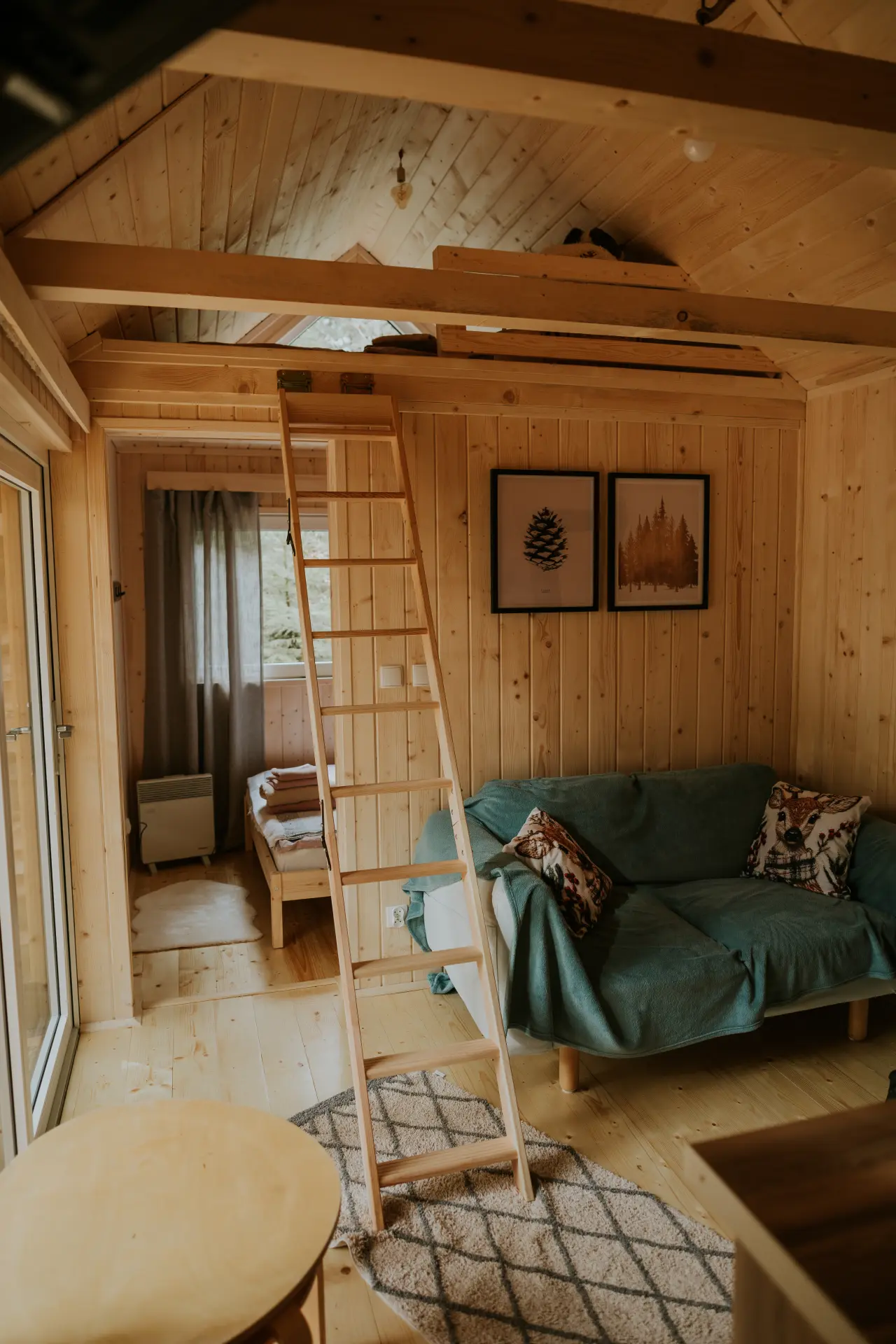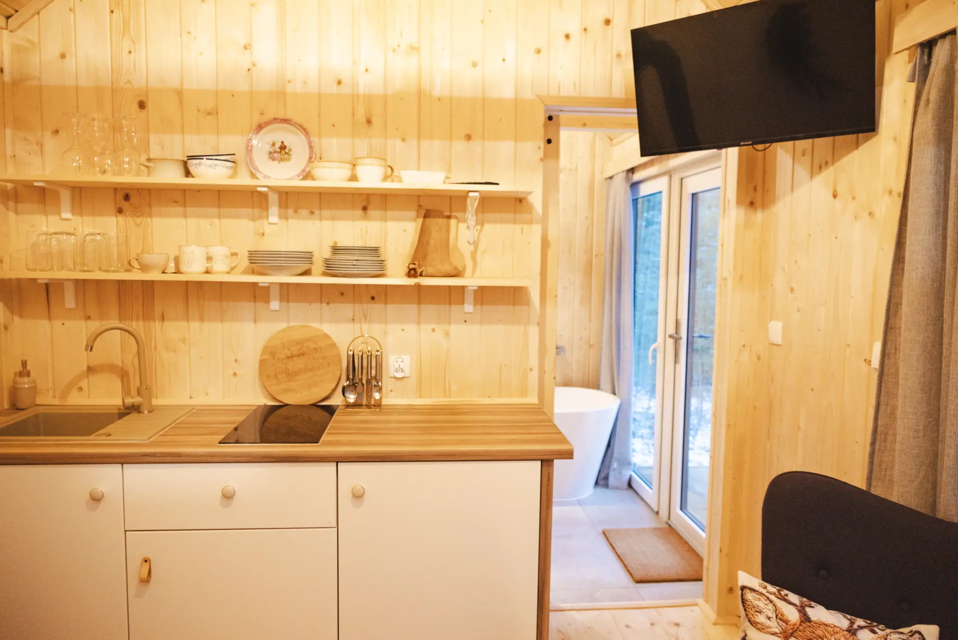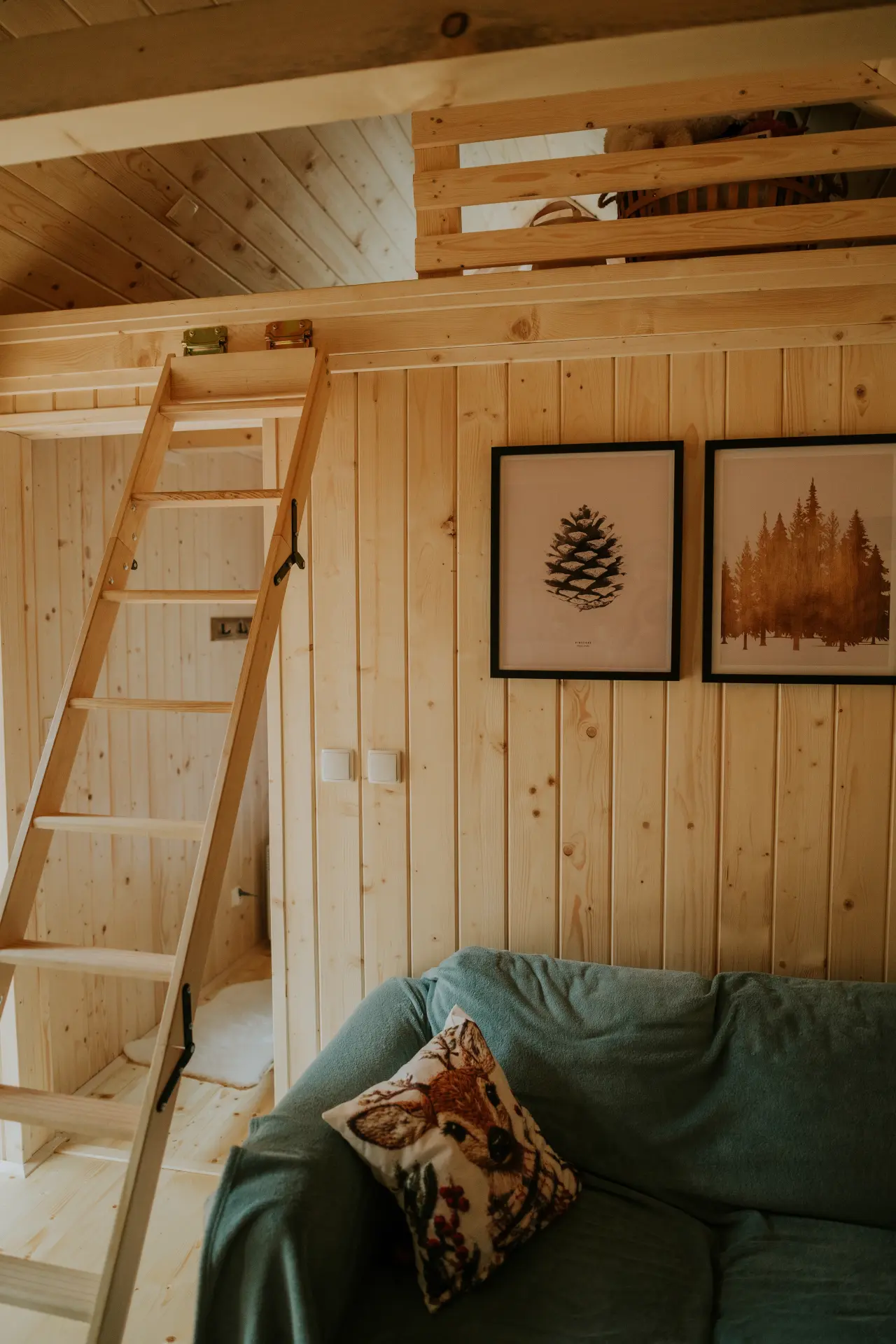 Welcome to the charming wooden cottage Tiny, located in a picturesque setting of forest nature. The cottage, with an area of about 30 m², is an ideal place for a romantic getaway or an intimate vacation away from the hustle and bustle of the city. The combination of modern amenities and natural charm makes every stay here a unique experience. The cottage can accommodate up to 4 adults, however, due to the open mezzanine, the cottage is more suitable for a couple or a couple with two children.