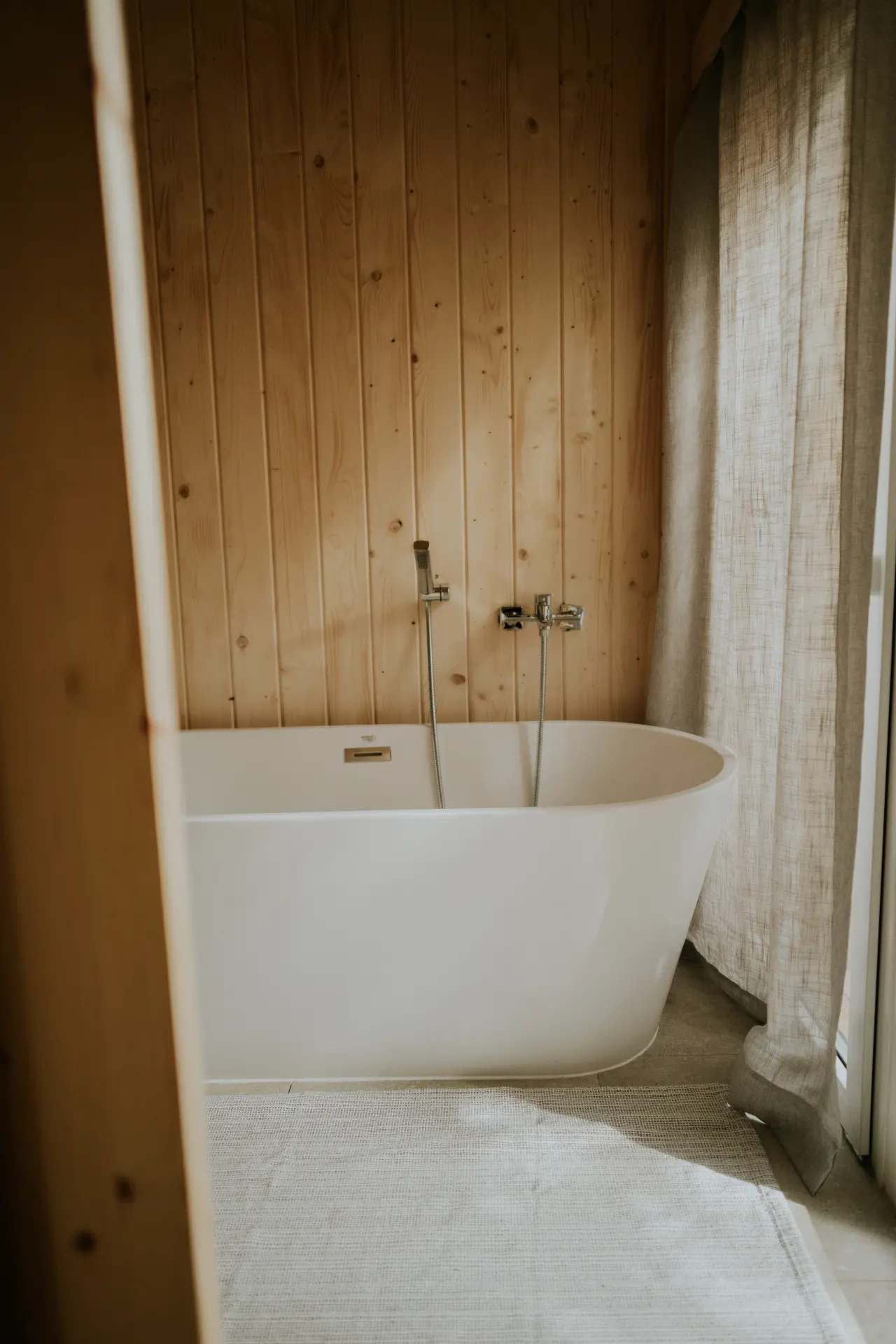 - Bathroom: bathtub with a beautiful view of the forest – ideal for relaxing baths (no washing machine).
